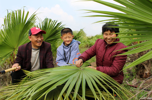 在郭北镇放生桥村,当地农户抓住晴好天气收割蒲葵。