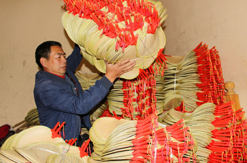 在郭北镇黄泥村,当地农户码放即将外运的订单蒲扇。