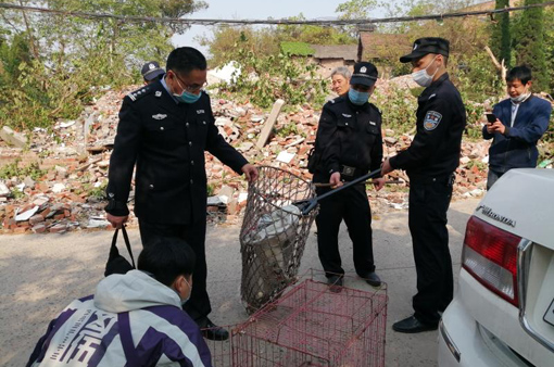 在等待救援的时间里,为防止狐狸受到二次伤害,大家一直蹲守在废墟旁等待,半个多小时后,森林公安以及公园的野生动物救助人员赶到现场,经检查确认,发现该动物是一只白狐。由于它身体有伤,为了不伤害到它,救助人员用随身携带的捕抓工具小心翼翼地进行追赶,但始终无法捕抓到,在辖区一养犬居民的建议下,让他家经过训练的犬只加入围捕队伍帮忙捕捉。最终,在大家的齐心协力下,白狐最终被成功解救。民警与众多爱心人士纷纷握手表示感谢。