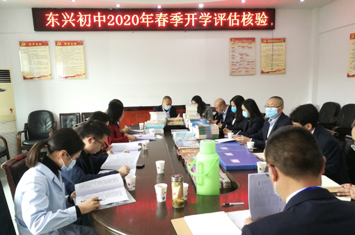 相关工作人员一行检查了校园环境,学校疫情防控展板,查看学校全自动热成像测温室以及全校消毒情况,充分肯定东兴初中疫情防控开学准备工作,验收组一致同意通过考核。