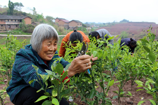 四川新闻网内江4月10日讯(李建明)4月9日,在内江市东兴区顺河镇骑龙村,贫困户和当地村民在柑橘苗圃修枝。