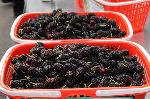 “目前,东兴区果桑品种主要有‘无核大十’‘嘉陵30号’‘红果二号’‘台湾长果桑’等,桑葚不仅可以直接食用,还可以制成桑葚膏、桑葚酒等。”据东兴区桑蚕茧服务中心陈林介绍,该区的万亩桑葚现已进入成熟期,采摘期将持续到5月中旬,在此期间,游客可前往双桥镇、双才镇等地采摘。