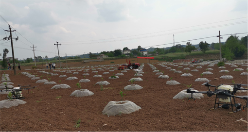 产业园开展无人机植保及“果-豆”套种播种施肥机械化社会化服务