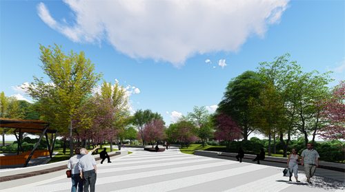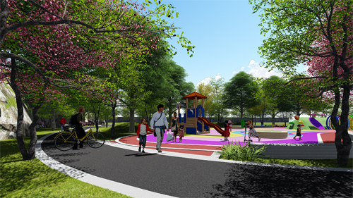 “目前已完成总工程进度的60%,下一步将推进园区道路铺装、环形道路建设等工作。”据该工程现场负责人周扬介绍,生态景观工程建设内容包括绿地景观、五人制足球场、入口广场、公厕及其他配套用房、公园道路、景观广场、儿童及休闲健身娱乐设施、公园水电配套、景观构筑物及雕塑小品、标识标牌等。同时,场内种植有黄葛树、榉树、朴树、香樟、蓝花楹、樱花、紫薇、桂花等不同种类的乔木,着力打造集休闲、娱乐于一体的生态景观。