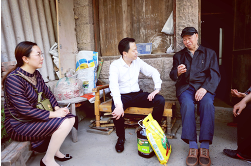 在高桥街道双烈村困难户张述伦家中,高新区管委会主任余梅同志在了解到老人儿子因病去世,目前只有老两口相依为命的情况后,要求街道要切实落实照料服务责任,定期探视巡防,密切关注老人生活情况,确保“平日有人照顾、生病有人看护”。同时鼓励他们要树立信心,勇敢面对生活。