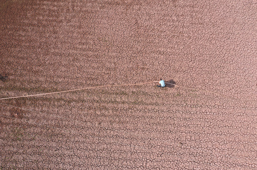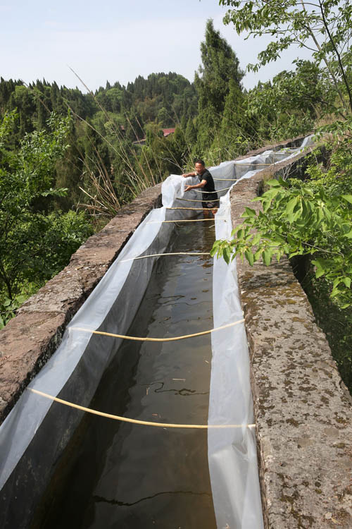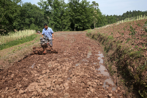 四川新闻网内江5月13日讯(兰自涛)5月11日,四川省内江市东兴区平坦镇农民正在龟裂的水田里准备抽水灌溉。