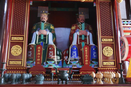 武庙按照古代武庙样貌,不仅复原了关圣殿,关羽及其弟子等塑像,还有忠义堂、启圣殿、古代名将馆等殿堂,新增了刘备、关羽、张飞、岳飞和二十四大将等塑像。