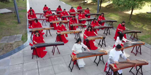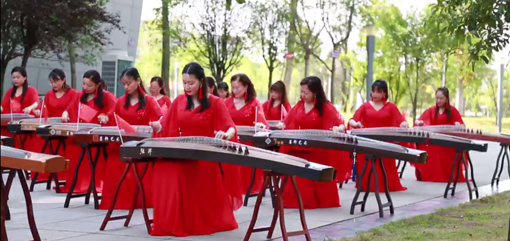 表演者们身着红色礼服,以饱满的热情,激昂的姿态,用指尖弹奏出旋律优美、奋进的乐曲,抒发着演奏者们热爱祖国,祝福祖国的美好祝愿。