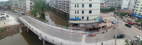 曾经的老上桥,因桥面窄、位置低,桥孔常被上流冲卷而来的杂草杂物堵塞,每年遇到涨洪水,桥面极易被淹,可谓“十洪九淹”,导致车辆和行人无法通行,极大影响了人们的生产生活,同时制约着场镇的建设和发展。