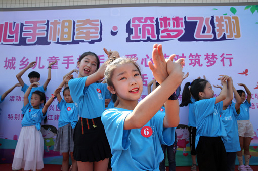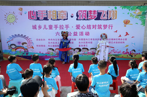 在“六一”国际儿童节即将到来之际,四川省内江市东兴区委宣传部、团区委等部门联合开展“心手相牵 筑梦飞翔”关爱乡村留守儿童公益活动,组织来自城区学校的小志愿者走进省级建档立卡贫困村经藏村,为该村的留守儿童表演节目、赠送书籍和学习用品,并和他们结对互助,开心迎接儿童节。