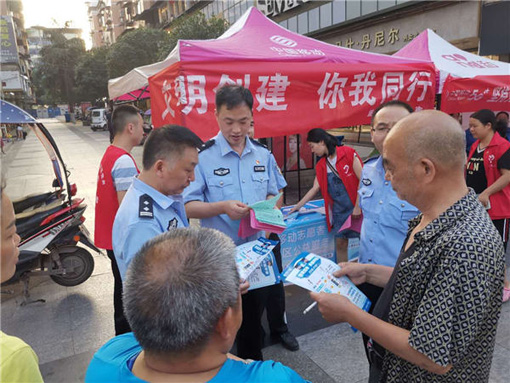 四川新闻网内江6月15日讯(刘世彬)为深化党建引领志愿服务,增强社区党组织的凝聚力、战斗力,日前,资中县重龙镇后西社区党委联合重龙一派出所,创文包保责任单位中国移动资中支公司开展“文明创建、你我同行”志愿服务活动,社区党员干部、网格员、志愿者们到重龙商业广场,向商家、过往居民发放创文、防诈骗、禁毒及扫黑除恶、申领全国防役健康码宣传资料,并做耐心细致地讲解,把党委政府的声音传递到居民当中。