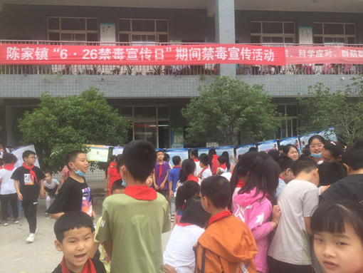四川新闻网内江6月28日讯(刘世彬)为加强全民禁毒教育工作,营造浓厚的禁毒宣传氛围,近日,资中县陈家镇“6.26禁毒宣传活动”在陈家中心校举行。陈家镇禁毒办主任李奎、工作人员周涛、王林君、派出所工作人员曹盛以及陈家镇中小学师生共计800余人参加活动。