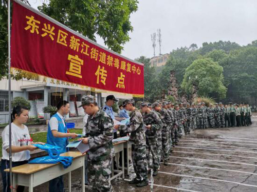 活动由新江街道办事处主任黄波主持,东兴区人民法院刑庭庭长毛战英对吸毒、贩毒相关法律法规用举实例的方式做了普及,同时教学生识别海洛因、吗啡、冰毒、麻古等传统或新型毒品。区禁毒大队中队长吴远辉向同学们介绍了国际禁毒日的起源、建立等历史知识,介绍了毒品的概念、种类,分析目前国家禁毒工作的开展情况,并结合自己在工作中遇到的案例讲述了吸食毒品对自身、家庭、社会、国家带来的危害。