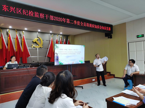 “周学”,即每周五定期在“东兴清风”QQ群、“东兴铁军”微信群推送纪检监察应知应会知识点供大家学习;“月测”,即每月由各专业技能培训班牵头室(部)出题,在每堂专业培训课后即组织开展对该堂课辅导内容的测试,当场检验培训效果;“季赛”,即每季度末,举行纪检监察应知应会知识点答题竞赛或开展专业课现场案例模拟演练,以巩固培训内容、指导工作实践;“年考”,即每年年底,组织全区纪检监察干部开展年度培训测试,督促干部对培训内容温故知新、指导工作开展。截至目前,已向全区纪检监察干部推送知识点14期72个,开展培训7期395人次,月测参训人员平均成绩86分。
