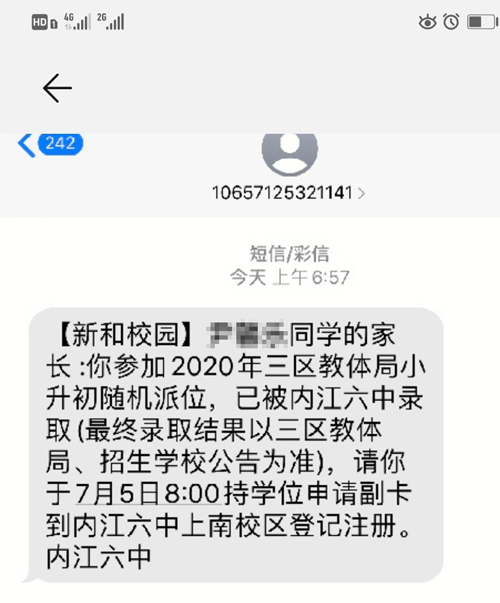 此次电脑随机摇号派位工作由现场抽签决定微机操作员进行派位操作和发布起止指令,电脑大屏幕公布摇号结果,整个摇号过程进行全程监督录像。据悉,本次参与摇号的四所学校内江一中、二中、六中、东兴初中登记学生共1892人,现场随机派位1206个学位。录取情况出来后,由各学校随即将结果通过手机短信告知了学生家长。