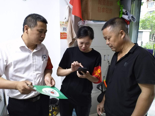 四川新闻网内江7月3日讯(门宇良 胡志华 黄晓林)为确保一方平安,筑牢疫情防护墙,内江经开区靖民镇双雁社区网格员持续在辖区内开展网格排查、宣传、服务工作。积极劝导群众下载“疫情信息健康码”。