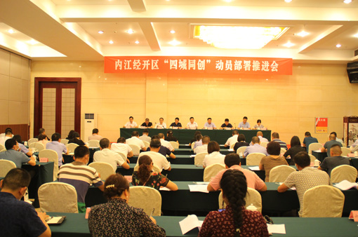 四川新闻网内江7月9日讯(李永琴 文/图)为深入贯彻落实内江市委、市政府“四城同创”动员部署推进会的会议精神,确保高质量完成全国文明城市提名城市、国家卫生城市、全国市域社会治理现代化试点合格城市、省级创新型城市创建工作,7月8日,内江经开区召开“四城同创”动员部署推进会,对全区“四城同创”各项任务进行了动员部署。