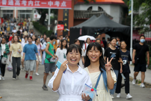 四川新闻网内江7月9日讯(兰自涛 文/图)7月8日,在四川省内江市第一中学考点,考生在高考结束后满面笑容走出考场。