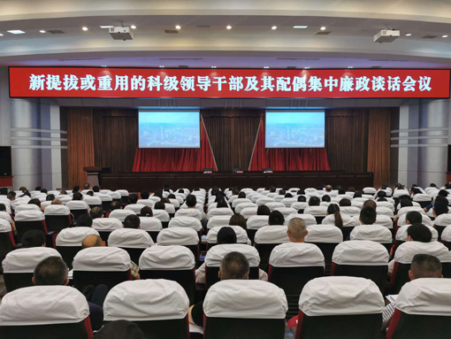 新提拔或重用的科级领导干部及配偶正在观看警示教育片