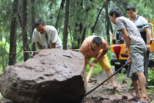 应急小分队正在对清理石块