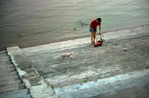 客船安全驶出后,段蜀辉拿起扫帚打扫起码头的卫生。“我得抓紧时间把卫生打扫一遍,今天逢场,等会儿更忙。”段蜀辉沿着台阶一梯一梯地清扫。