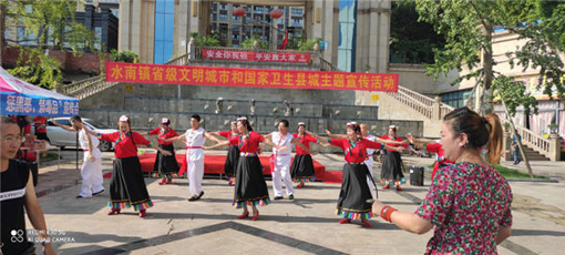 活动现场,社区志愿者向居民群众发放创建全省文明城市宣传单等资料、举办参与有奖竞答、进行民意调查等,来提高居民对创建文明城市的知晓率、参与率。并在辖区内悬挂创建横幅等,倡导社区居民从自身做起、从现在做起、从细节做起,为资中县创建省文明城市作出自己应有的贡献。现场还邀请水南镇知名书画家现场作画、写字,为该县创文明城市送上美好祝福。现场气氛热烈,人和舞蹈队带来了精彩表演,市民踊跃参与活动,积极回答问题。