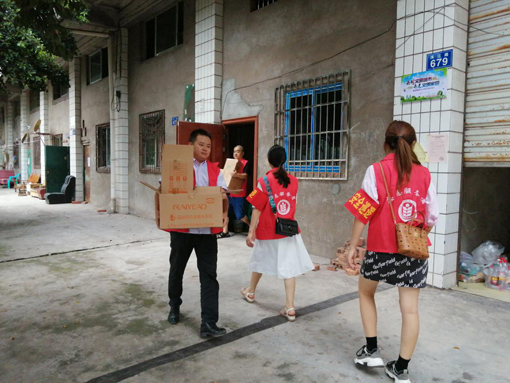 8月17日,资中县经信局党员干部协助社区转移群众物资