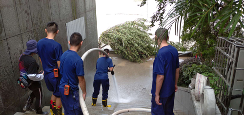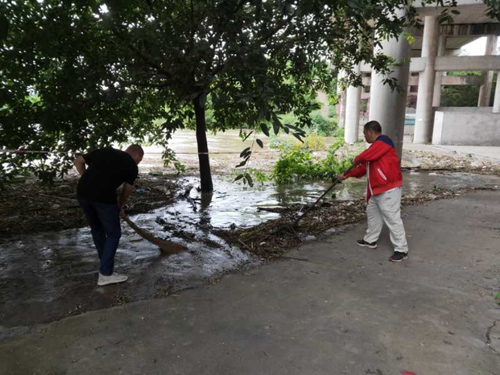 市中区组织人员在大洲路清除淤堵。市中区委宣传部供图