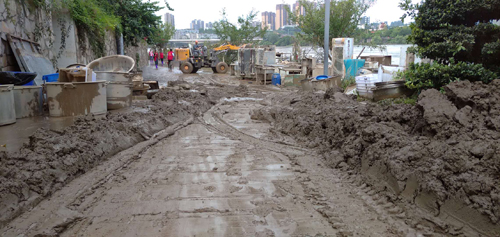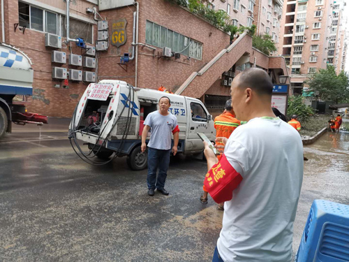 8月19日一早,市中区大洲广场对面的渝江路、虹桥中路等多条街道开始清淤。市中区委宣传部供图