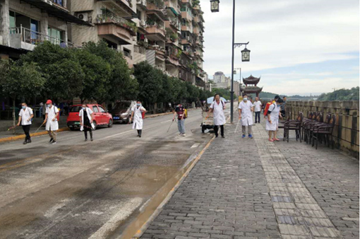 8月16日至17日,受上游强降雨影响,沱江形成新一轮洪峰。洪峰过境资中县城区时,洪水漫过滨江路,导致沿江不少商户被淹。8月18日,洪水逐渐退去,资中县疾控中心迅速组织人员,投入到消杀工作中。