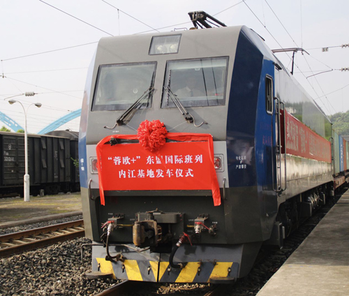 “蓉欧+”东盟国际班列从内江始发。李永琴 摄