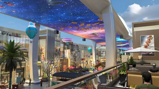 在项目现场,在天幕步行街旁,一座造型时尚新颖的商业体正在建设之中。据项目相关负责人介绍,这是与天幕步行街同步在建的万晟汇购物中心,该购物中心定位为一站式家庭型购物中心,总体量约7.3万平方米,拥有内江首个公益性屋顶儿童乐园和首个屋顶篮球场运动场,是未来内江重要的购物休闲场所之一。