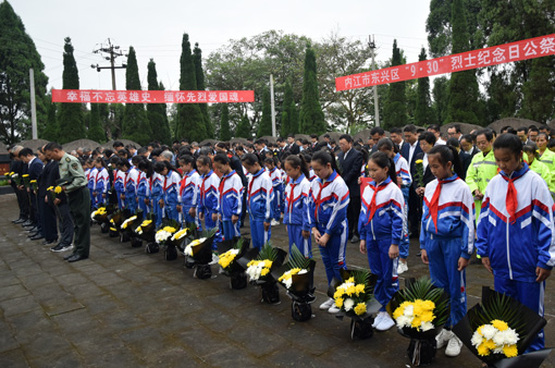 四川新闻网消息(唐明润)2020年国庆节前夕,内江市东兴区通过开展国防教育集中宣传、举行烈士纪念日公祭活动等方式,缅怀烈士功绩、弘扬烈士精神。