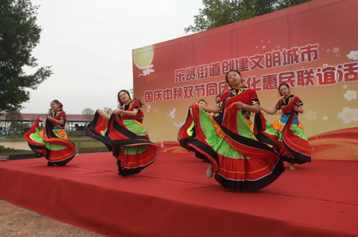 接着举行的文艺演出成为活动最为热闹的场面,只见穿上节日盛装的人们轮流上台,有的是纵情歌唱的声乐,更有是激情四射的舞蹈,更有可爱无比的幼儿园小朋友们表演的充满童真,动感十足的舞蹈。人们用不同的形式歌颂乐贤的变化,歌颂正在享受的美好生活。