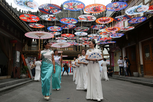 东兴区举办首届旗袍秀比赛,吸引不少市民和游客前来观赏。(东兴区委宣传部供图)