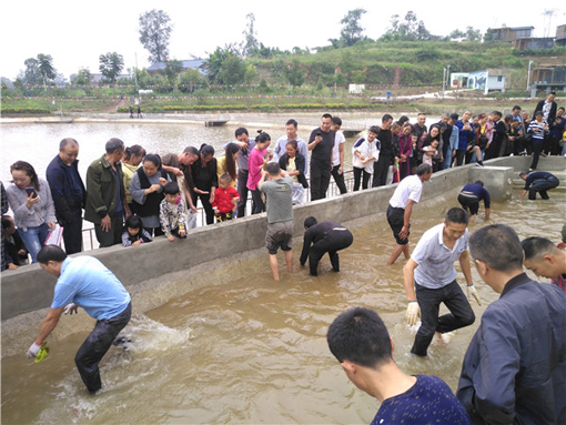 ▲资中县鱼溪镇五指山农旅康养生态园摸鱼比赛