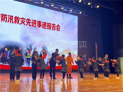感人至深的营救,慷慨激昂的冲锋,日日夜夜的坚守……台上,是报告团成员一字一句真挚质朴的语言,一张张令人震撼的现场图片。台下,是资中人民时而为之感动的泪水,时而为之振奋的掌声。