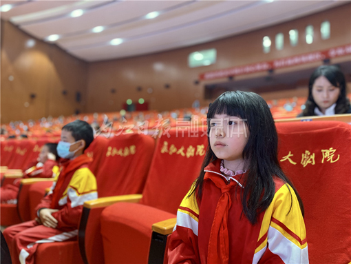 报告会前,资中的少年队员代表全县人民向7位报告团成员送上了鲜花。