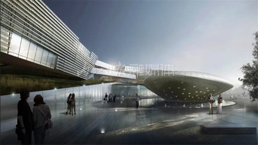 据了解,施工方利用建筑底层的坡道,将所有的功能区连接起来,并在广场和坡道中引入一些能激活空间的媒介,广场和坡道成为面向城市的灵活开放空间。为了更好地完善“产城一体化”的规划理念,将“高新之眼”放置于交流广场中心,并通过架空层与创新广场直接相连。“‘高新之眼’是一个交流中心,未来可以在这里举办产品发布会、科技成果展示、博览、大型交流会议等活动,成为内江高新区与世界联系的窗口。”
