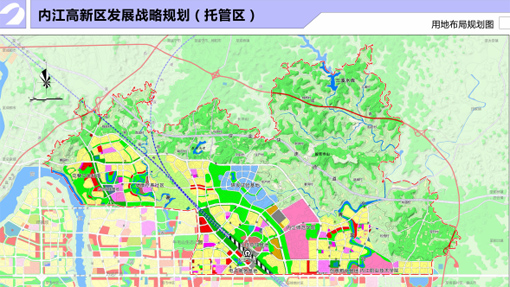 高新区高铁片区根据区域山形地势规划布局了西林大道、东城路、玉屏街、北环路、复兴路、能力路、站1路、站2路、汉安大道等道路,将高铁片区与内江北站及321国道连接起来,形成高铁片区完整的路网体系。