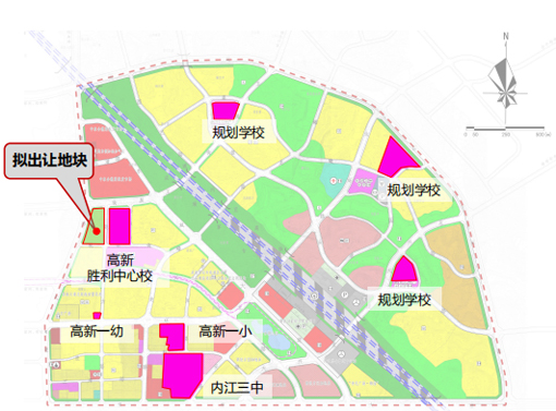 该地块周边教育资源丰富,区域内现有高新一小、高新一幼、高新胜利中心校等中小学校,同时距离高桥片区机关幼儿园、十三小、内江六中等教育资源较近,与内江师范学院等大专院校保持快速可达距离,区域内还规划有四处中小学校,教育环境优越。