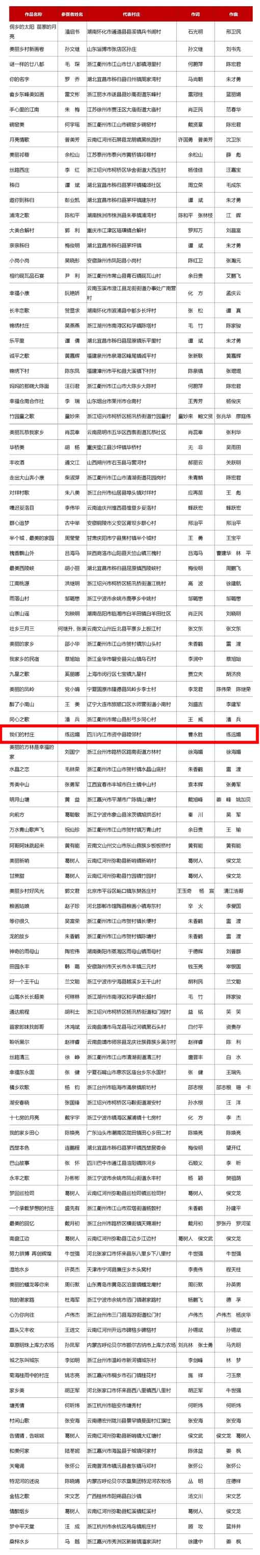 拟入选2020年中国村歌大赛百佳村歌公示名单