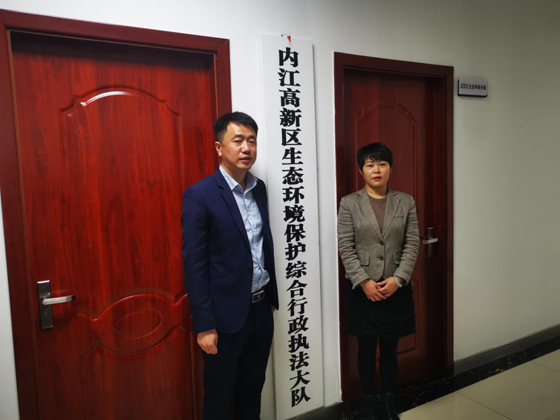 内江高新区生态环境保护综合行政执法大队的成立,标志着高新区生态环境执法工作掀开新的一页,分局将以此生态环境保护综合行政执法大队成立为契机,牢记使命,加强学习,不断提高环保执法能力水平,提高工作效率,坚决打赢污染防治攻坚战。