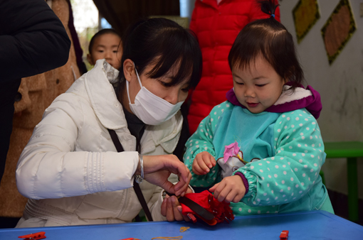 四川新闻网消息(唐明润 文/图)11月24日,在内江市东兴区双才镇贾家博远幼儿园,孩子们正和家长一起体验扎染工艺。