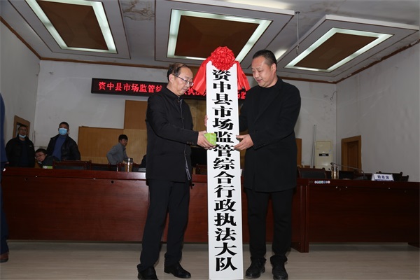 四川新闻网消息 12月25日,新组建的资中县市场监管综合行政执法大队、市场监督管理所(市场监管执法中队)在资中县市场监督管理局举行揭牌仪式。