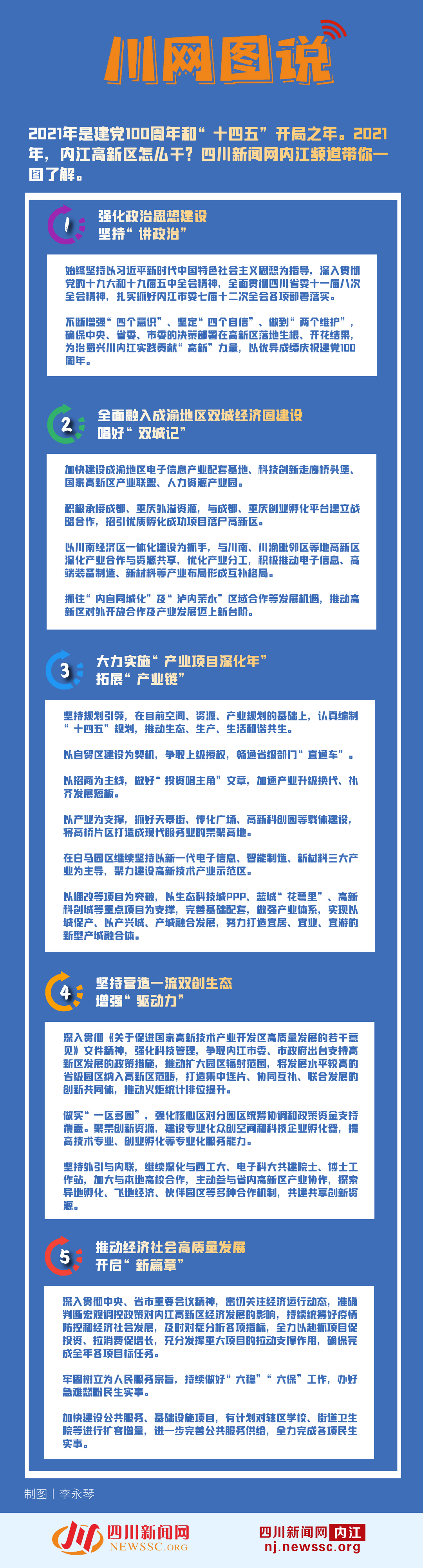 2021年是建党100周年和“十四五”开局之年。2021年,内江高新区怎么干?四川新闻网内江频道带你一图了解。(制图丨李永琴)