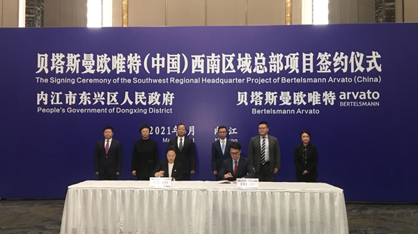 四川新闻网消息(李永琴 文/图)3月12日,四川省内江市东兴区人民政府与贝塔斯曼集团欧唯特(中国)西南区域总部项目签约仪式举行。作为服务外包行业全球100强前3的企业,贝塔斯曼集团欧唯特(中国)西南区域总部落地内江市东兴区,必将吸引成渝地区年轻人加速集聚内江、安居乐业,促进城市人口结构年轻化及新经济产业的持续发展。