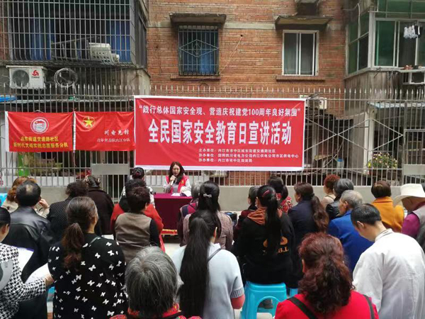 “今天是第六个全民国家安全教育日,维护国家安全,人人有责”。大洲广场社区的小喇叭、交通路社区的主题宣讲会、上南街社区的上门入户……各社区通过各种形式开展宣传活动,向社区居民讲解国家安全法律法规,营造全民关注国家安全的浓厚氛围。