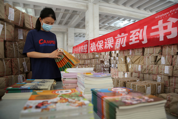 随着秋季开学临近,四川新华文轩内江市东兴分公司抓紧做好全区中小学教材的调运、整理、分发等工作,确保学生新学期及时领到新教材。(内江市东兴区委宣传部供稿 兰自涛 摄)