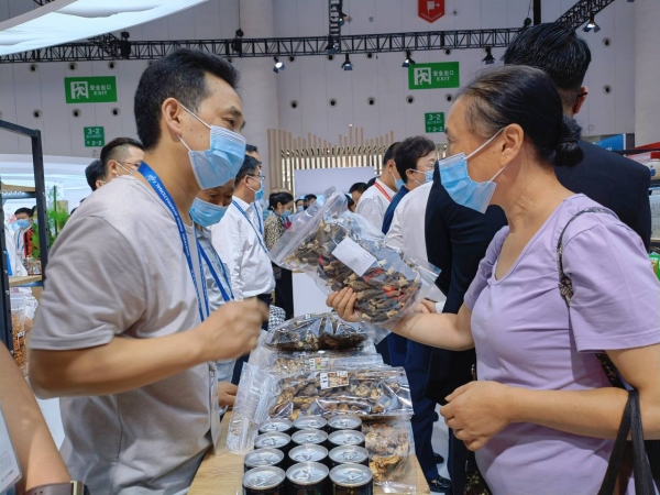 截至目前,东兴区展区访问人次达到11000余人次;签订意向性合作协议34份,来往商客关注较多的产品有天冬膏、九制黄精、天冬蜜饯、天冬护肤品、烙画扇工艺品、煤矿用聚氯乙烯管、永福生姜、东兴椒、羊肚菌等。